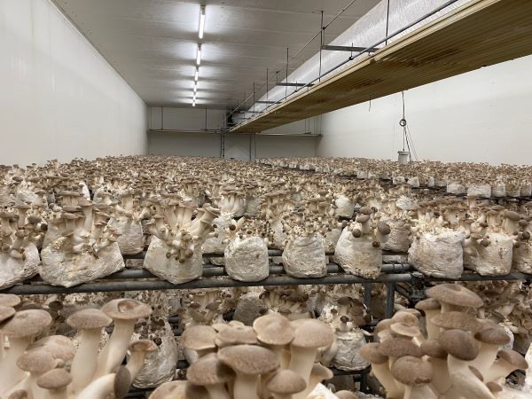 Trois tonnes de pleurotes en huître roses, sur le point d'être récoltées