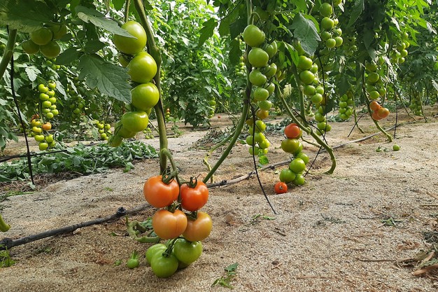 Dans la région de Nijar, la nouvelle entreprise dispose de plusieurs serres et d'un centre de manutention exclusivement destinés à la production biologique. « Concrètement, nous disposons de 10 hectares de tomates, répartis dans deux serres et, en ce moment, la plantation se porte très bien, avec des rendements de l'ordre de 9-10 kilos par mètre », commente Juan Pérez, technicien de Biogrow Farms, accompagné de Juanma Zapata, représentante commerciale de l'entreprise, alors qu'ils se promènent à l'intérieur des serres en regardant les grappes de tomates qui finissent de rougir.