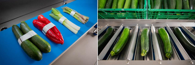 Avec la machine de pesage et de banderolage automatique de Freshtech Solutions, l'ensemble du processus de production, de la pesée, de la mise en paquet et du banderolage est automatisé en une seule machine. La machine est adaptée pour l'emballage de divers produits tels que la courgette, le poivron pointu, le poireau, l'asperge, la carotte et la rhubarbe.
