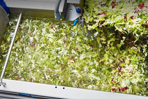 Afin de prouver l'efficacité du procédé dans un cadre industriel, des tests utilisant le PTW pour traiter les jeunes pousses et d'autres types de laitues dans la machine à laver HEWA développée par KRONEN ont été effectués pendant plusieurs mois dans les installations du fabricant de produits frais Gartenfrisch Jung GmbH. Ces tests ont porté sur l'efficacité de la désinfection de l'eau de lavage et des produits traités, sur les économies de ressources par rapport à d'autres méthodes de désinfection et sur l'optimisation de l'aptitude au stockage et au transport des produits.