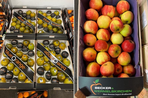 La marque d'agrumes Blue Orange et les pommes de la région d'Alte Land