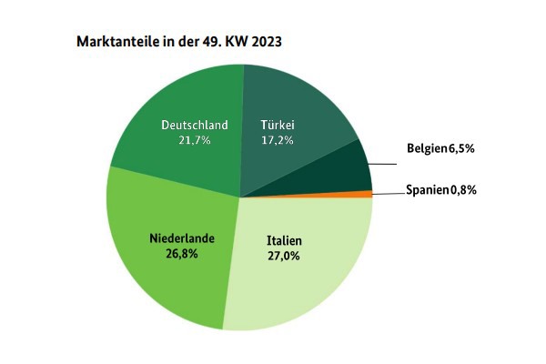 Les arrivages espagnols ont été prédominants. Les livraisons turques ont complété celles du Maroc. Les produits néerlandais, autrefois dominants, n'étaient disponibles qu'à Berlin.