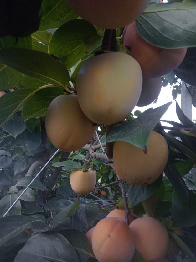 Ci-dessus, Rojo Brillante kaki en phase de maturation, qui sera récolté dans la première quinzaine de janvier 2024.