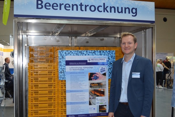 Cette année encore, le stand de l'expoSE de Karlsruhe était consacré aux techniques de réfrigération innovantes destinées à l'agriculture. Mefus & Frisch peut se targuer d'une participation réussie au salon des asperges et des baies. « Dans l'ensemble, le salon a connu une bonne fréquentation. Nous avons eu des entretiens positifs avec plusieurs clients existants. L'expoSE est très importante pour nous, car elle nous permet de présenter l'ensemble de notre gamme de produits et d'échanger des idées novatrices », explique Frisch.