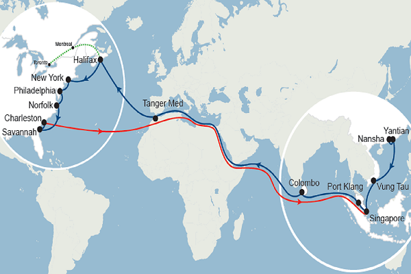 - Rotation : Tanger Med - Halifax - New York - Philadelphie - Norfolk - Savannah - Charleston - Tanger Med