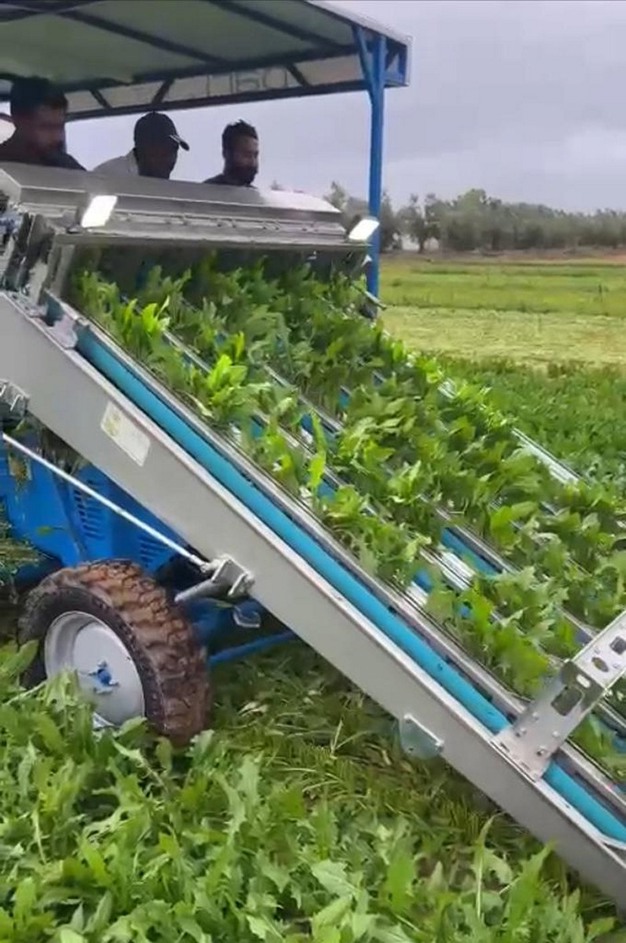 « Une autre machine révolutionnaire est la Vertical, qui permet de récolter la roquette en bottes », explique Alberico Durso, PDG de Dari Ecomeccanica. « Cette machine a été conçue pour la récolte de légumes à feuilles en rang ordonné et en position verticale, d'où le nom de Vertical. Elle présente l'avantage de récolter les légumes en bottes, qu'il s'agisse de légumes à petites feuilles comme les jeunes pousses ou d'herbes à plus larges feuilles comme le basilic et le persil. »