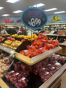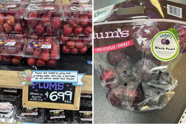 A droite : prunes sud-africaines chez Trader Joe's