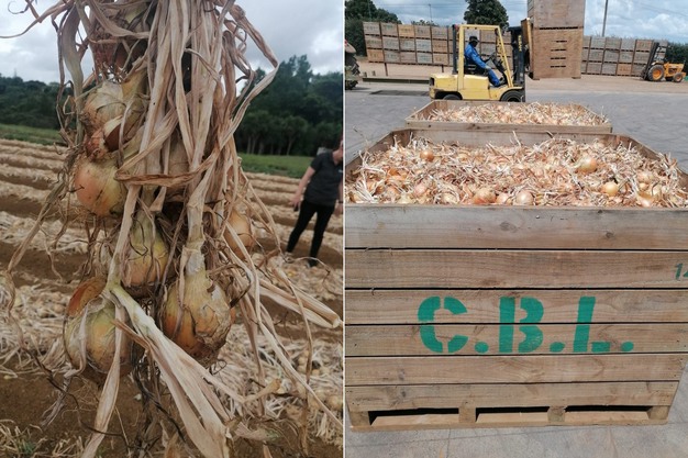 Oignons jaunes de Nouvelle-Zélande juste après la récolte