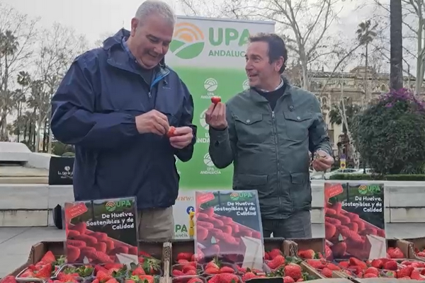 Aujourd'hui, au cœur de Séville, l'UPA a distribué des barquettes de fraises aux Sévillans et aux touristes, les invitant à consommer en toute sécurité des fraises nées à Huelva, avec, comme l'a souligné Manuel Piedras, « toutes sortes de garanties de qualité, saine, et durable. »