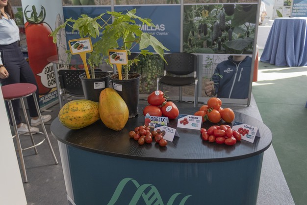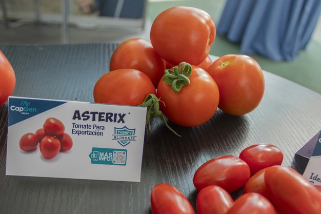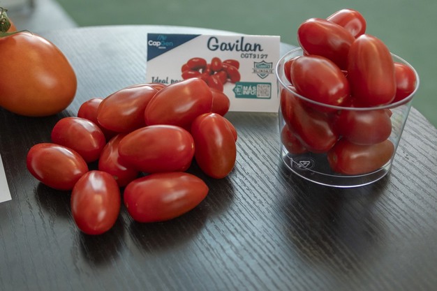 Parmi les produits vedettes présentés par l'entreprise, deux variétés de tomates se sont distinguées et ont attiré l'attention du public : la tomate cerise poire Gavilán. « Il s'agit d'une variété de fruit de type datte d'un poids moyen d'environ 15 grammes, de couleur rouge avec une brillance et une dureté exceptionnelles, ce qui la rend idéale pour la culture biologique grâce à sa résistance (TYLCV, Fol : 0-2, ToMV, Va, Vd, Pf, Pst, Sl, Lt) », souligne Alejandro Montes, du département de marketing de CapGen Seeds.