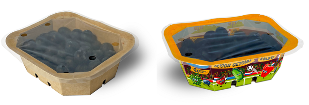 Ce sont les premières barquettes en carton que Quality Pack a introduites sur le marché. Aujourd'hui, les barquettes en plastique standard K37 et K30 sont disponibles en carton, une alternative plus durable. Grâce à des adaptations astucieuses, il n'est pas nécessaire de changer les machines de l'usine d'emballage. Cette solution utilise un film PET d'à peine 25 microns d'épaisseur pour le scellage. Après utilisation, le carton peut être recyclé avec les vieux papiers et le film facilement amovible avec le plastique. "Le film PET adhère rapidement à la barquette, généralement en 0,2 seconde à une température de 150°C", explique Marnix.