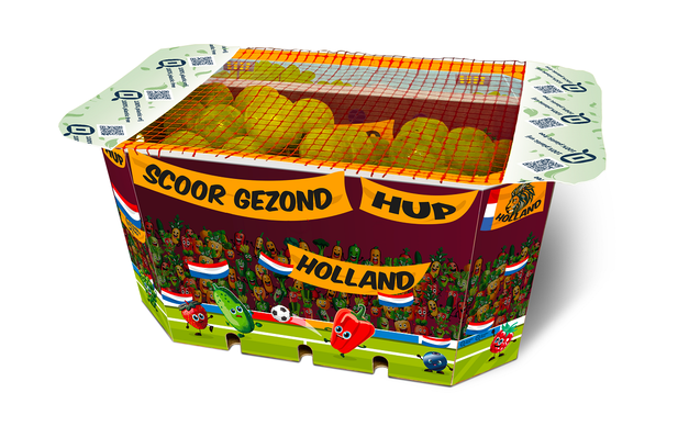À l'approche du Championnat d'Europe de football, Quality Pack propose une version UEFA des barquettes avec une impression standard pour les marchés néerlandais et germanophone. "Les produits ciblés sont les légumes à grignoter et les fruits mous : tomates, concombres, poivrons, fraises et myrtilles. Nous avons envoyé un message à tous nos partenaires et ils peuvent s'inscrire. Ils n'ont donc pas besoin de lancer eux-mêmes un grand lot et risquent d'être en rupture de stock. Nous voulons produire environ un million de ces plateaux pour que tout le monde puisse bénéficier des économies d'échelle. Nous pouvons également ajuster légèrement l'impression".