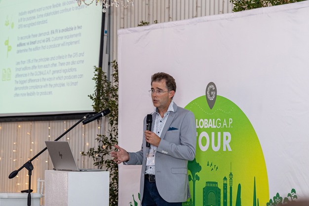 Lors de l'étape sud-africaine de la tournée GLOBALG.A.P. qui s'est tenue la semaine dernière, Brian Windsor, expert technique principal de GLOBALG.A.P., IFA Fruit and Vegetables (qui a lui-même été agriculteur et auditeur), a parlé de l'amélioration continue des normes afin de tenir compte de la variété des expériences agricoles. « Nous invitons les producteurs à s'impliquer activement - c'est ainsi que nous faisons en sorte que GLOBALG.A.P fonctionne pour tout le monde. La norme a plus de vingt ans d'expérience dans l'évaluation des pratiques agricoles ».