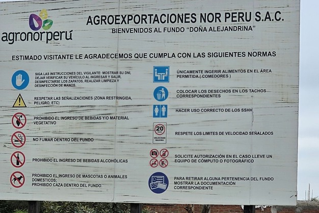 Des informations détaillées sont fournies à l'arrivée chez Agroexportaciones Nor Perú SAC.