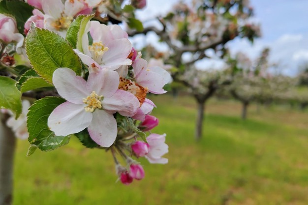 « Les cerisiers de la Vallée de Caderechas se trouvent entre 650 et 900 mètres d'altitude, ce qui fait que la récolte des premières cerises, un peu plus tardive que dans d'autres zones d'Espagne, sera autour de la première semaine de juin », continue-t-il. « Quant aux pommes Reinette cultivées dans la vallée, elles ont fleuri la première semaine de mai et maintenant elles perdent leurs pétales, mais en l'absence de gelées, nous attendons également une bonne récolte. »