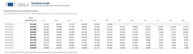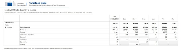 Plus précisément, pour cette campagne 2023/24, d'octobre à mars, l'UE a importé 551 015 t de tomates de pays tiers, dont 373 421 t étaient des tomates marocaines, mais vers quelle destination spécifiquement ?