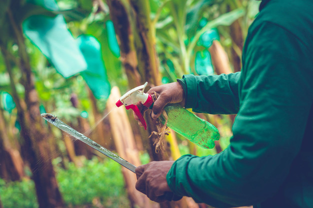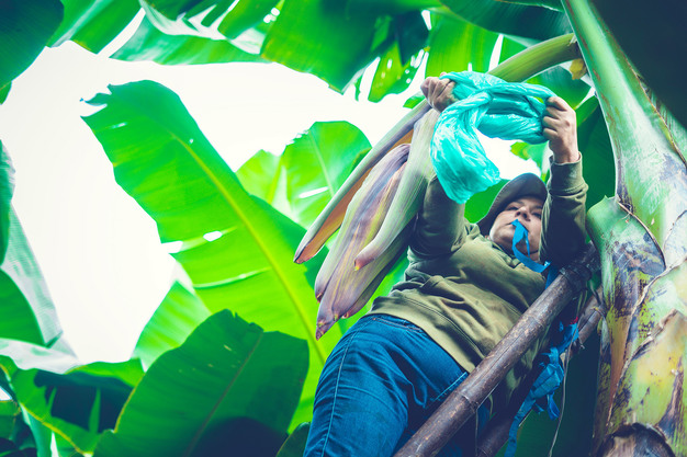 Les régimes de bananes sont protégés du vent et des insectes