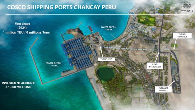Le service WSA3, depuis plusieurs ports de Chine vers des ports au Mexique, au Pérou et au Chili, transférera son escale actuelle du port de Callao à celui de Chancay. Un nouveau service direct entre le port de Chancay et celui de Shanghai avec une arrivée par semaine sera ajouté. Le projet, conçu en 2009, a commencé sa construction en 2018 et comptera, pour l'ensemble des quatre phases, un investissement d'environ 3,6 milliards de dollars.