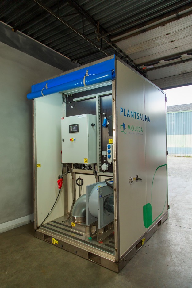 Le principe de base du processus a été découvert par l'Université de Floride et NIBIO, un institut de recherche norvégien. Marten Barel et Ole Myhrene ont ensuite développé la technique en vue d'une application pratique. Plantsauna est aujourd'hui disponible chez Moleda. « Nous traitons d'abord les plantes avec de la vapeur d'eau aérée à 37 °C. Ce traitement dure une heure. Ensuite, la plante se repose et se refroidit pendant une heure, avant de se réchauffer à nouveau lors d'un second traitement thermique à 44 °C. En fonction du champignon, de la créature ou de la bactérie à combattre, ce dernier traitement dure de 2 à 4 heures. »