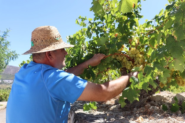 « Lorsque j'ai terminé mes études secondaires, je me suis entièrement consacré à travailler avec eux dans les champs jusqu'à aujourd'hui, même si c'est un moment très difficile et triste à cause du manque d'eau, nous continuons à cultiver un raisin unique. Il y a encore quelques familles qui cultivent le raisin muscat sans irrigation ici à Teulada. La façon de procéder est un secret bien gardé. »