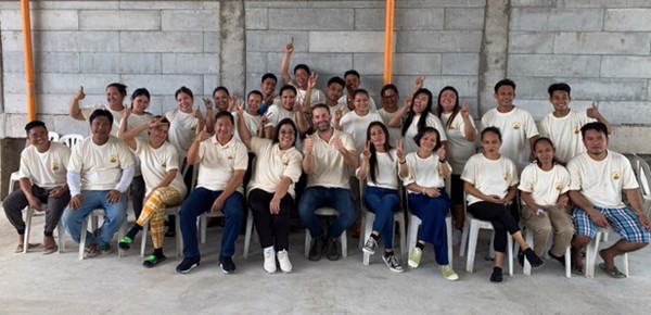 L'équipe de Pili Pi Nuts aux Philippines, avec Ties Minnen au centre