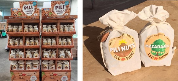 « Nous sommes devenus partenaires en matière de marketing », poursuit Minnen. « Pour Die Frischebox, nous produisons et conditionnons sa marque Red Rhino, dont les noix de pili entrent dans les supermarchés dans leur coque à encoches, avec un casse-noix. Chez Pili Pi Nuts, nous produisons toutes les variantes outre les noix de pili en coque : des cerneaux non transformés, une variante caramélisée et une variante salée blanchie. La noix de pili caramélisée en particulier est très bien accueillie par les consommateurs, car le beurre de la noix contraste agréablement avec l'enrobage caramélisé croustillant. »