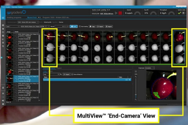 Alors que les caméras descendantes produisent des résultats tout à fait acceptables, le système de caméras MultiView™ commence vraiment à briller lors des opérations de calibrage où les fruits sont très mauvais (par exemple, lorsque les pluies sont fortes).