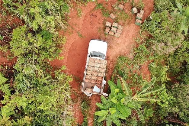 Gingembre fraîchement récolté dans un camion.