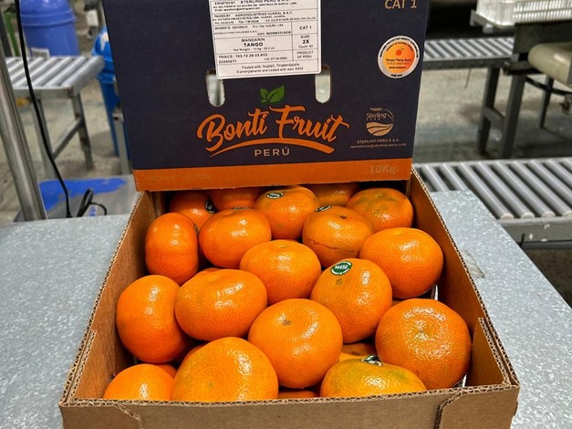 Patrick Early, fondateur de Sterling Perú, commente : « Nous avons commencé la campagne de mandarine en mars et elle dure jusqu'en septembre et octobre. Nous exportons toutes les variétés : W Murcott, PrimaSole, Satsuma, Tango...» L'entreprise s'est principalement établie sur le marché américain, qui absorbe 80 % de sa production. « Nous exportons principalement vers les États-Unis et une quantité moindre vers l'Europe », explique Patrick, bien que les conditions du marché européen n'aient pas été aussi favorables cette année.