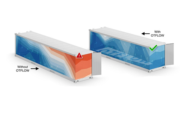 Otflow est un revêtement de sol breveté qui assure une circulation optimale de l'air dans les conteneurs frigorifiques pendant le transport outre-mer. La technologie a été conçue par Otto de Groot, propriétaire et fondateur de HDG, en collaboration avec l'université et la recherche de Wageningen. Cette technologie a été conçue pour améliorer la distribution de l'air dans un conteneur. Après des essais approfondis par WUR, il a été constaté qu'elle améliorait la circulation de l'air de 30 %. Les fruits trop chauds risquent d'endommager les portes des conteneurs réfrigérés. Le couvre-sol Otflow permet d'éviter ce problème.