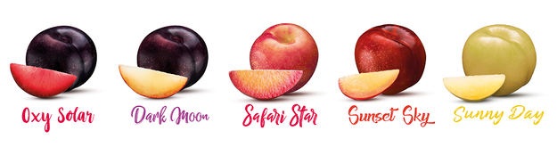 Oxy Solar, Dark Moon, Safari Star, Sunset Sky et Sunny Day composent la collection de prunes Metis®