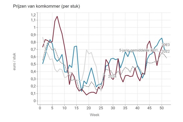 Le prix du concombre est parfois repassé sous la moyenne quinquennale, après des semaines de prix très élevés.