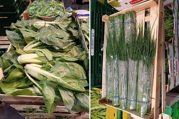 Pakchoï allemand et ciboulette sur le stand de l'entreprise Özdemir.