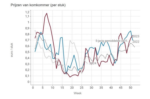 Les prix des poivrons rouges, jaunes et verts ont également légèrement baissé, bien que le prix moyen FBT, toutes couleurs confondues, soit resté supérieur à la moyenne quinquennale.