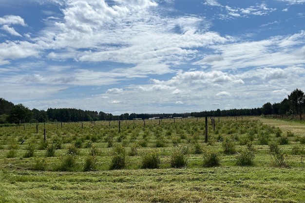 La parcelle sur laquelle Wilfried a planté ses myrtilles « a été défrichée en 1998 pour être pendant 20 ans un parcours de canards et depuis 2018 elle héberge 30 moutons, leurs petits et un cheval. Le terrain n'a jamais connu de produit comme désherbant ou autre il est donc classé en agriculture biologique par Ecocert depuis juin 2022 ». Amoureux de la nature, Wilfried considère que celle-ci a tout prévu et travaille donc sur la décomposition pour nourrir les sols "comme en forêt". Pas de goutte à goutte non plus mais des sprinklers « pour arroser quand il gèle uniquement car je veux que mon système racinaire prenne le temps de se développer pour aller chercher lui-même l'eau. Si dès le départ je lui donne trop il ne se développera pas et produira moins sur le long terme ». Et pour allonger sa campagne au maximum Wilfried a choisi 3 variétés qui se suivent pour ne pas avoir à les récolter en même temps.