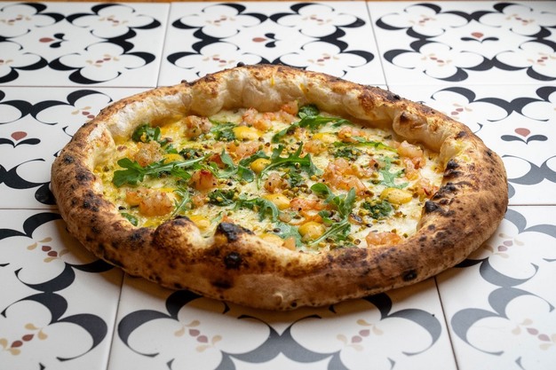 « Cette pizza, réalisée par l'un de nos clients cité parmi les 100 meilleures pizzerias du monde, utilise la roquette sous trois formes : fraîche, en poudre et à la crème », selon Altamura