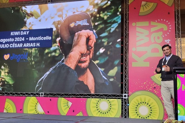 Jingold a été l'un des principaux sponsors de la journée, qui a attirée un grand nombre de participants, plus de 500 personnes, dont des experts et des opérateurs du secteur. L'entreprise italienne - une référence mondiale dans la production et la commercialisation de kiwis de premier choix - a participé à l'événement avec un grand stand d'exposition et du matériel promotionnel distribué à tous les acteurs présents. Elle a également pris part au séminaire qui a constitué le point central de la journée, au cours duquel des questions relatives à l'avenir de l'actinidia ont été débattues. Concrètement, le directeur de Jingold Chile, Julio César Arias, a présenté au public d'opérateurs spécialisés les kiwis cultivés exclusivement par les membres de l'entreprise dans l'hémisphère nord et sud et commercialisés avec succès dans le monde entier : la variété à chair jaune Jinyan®, tendre et juteuse, au goût sucré et aromatique, et la variété à chair rouge Oriental Red®, aux notes tropicales et à la douceur surprenante, très appréciée des jeunes consommateurs.