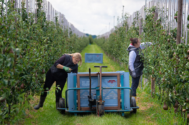 La nouvelle saison de pommes et de poires néerlandaises démarre cette semaine. Dans des conditions météorologiques favorables, une équipe de plus de 400 d'ouvriers saisonniers travaille d'arrache-pied dans les vergers de Staay Food Group pour récolter les fruits. Sur les 135 hectares du nouveau site de Staay 'Westende' à Fijnaart, dans le Brabant-Septentrional, la plus grande partie des poires a déjà été récoltée.
