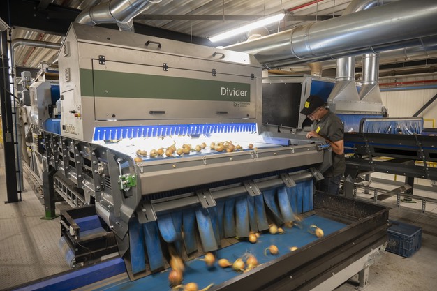 Flikweert Vision propose également le Divider, une machine qui élimine les corps étrangers et les produits très abîmés au début de la chaîne de production. Elle utilise une caméra montée au-dessus de la bande transporteuse et un système qui éjecte les objets indésirables. L'appareil est placé devant la tondeuse, ce qui facilite le contrôle initial de la qualité.