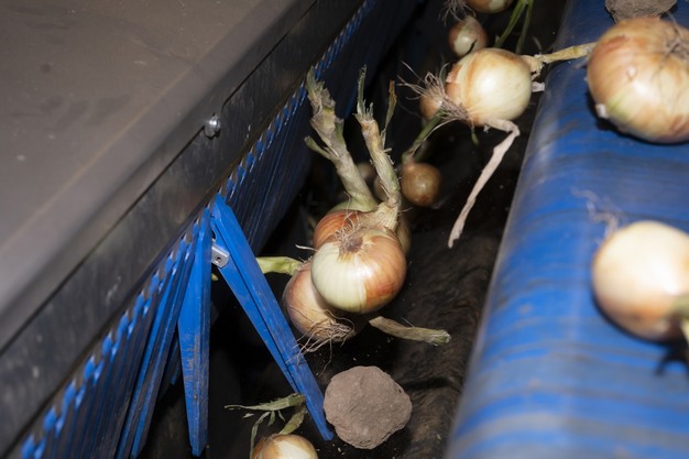 Séparation : produits nus, produits étrangers et oignons rejetés