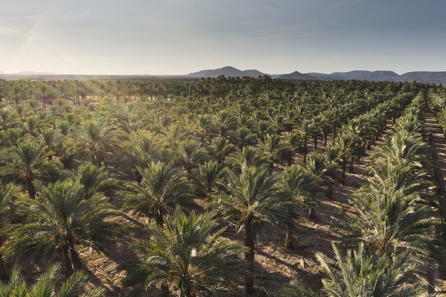 Située à la frontière entre la Californie, l'Arizona et le Mexique, la région de la Bard Valley est une zone unique de culture des dattes. Le microclimat de la Bard Valley peut être caractérisé par une chaleur intense, une faible humidité, ainsi qu'une nappe phréatique élevée, ce qui offre des conditions parfaites pour la culture des dattes Medjool. "Pour s'épanouir, les dattes ont besoin de 100 jours de température de 100°F (38°C) pendant la saison de croissance et la région de la vallée de Bard remplit ces conditions spécifiques", explique Bridgette Weber de Bard Valley Natural Delights. Si les conditions de la vallée de Bard sont parfaites pour la culture des dattes, il s'agit également d'un équilibre délicat. "Notre proximité avec les rivières du Colorado nous fournit beaucoup d'eau, mais les conditions météorologiques peuvent être imprévisibles. L'année dernière, plusieurs tempêtes ont traversé la région pendant la saison des récoltes. Cette année, la récolte a démarré sur les chapeaux de roue.