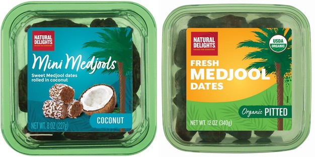 Des dattes dans des emballages plus petits. À gauche : la noix de coco est la saveur la plus populaire pour les Mini Medjools. À droite : la croissance des dattes biologiques dépasse celle des dattes conventionnelles.