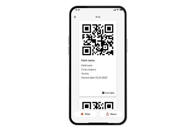 L'application Farmable peut être utilisée pour enregistrer les lots récoltés pour votre exploitation. Dès aujourd'hui, les producteurs peuvent immédiatement choisir d'imprimer des étiquettes de récolte pour tout enregistrement de récolte existant. Ils peuvent le faire au moment où ils saisissent les détails du lot, ou revenir à l'historique et imprimer les étiquettes lorsque cela est nécessaire.