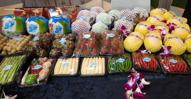 De nombreux fruits et légumes exotiques étaient exposés au salon. Pour le marché asiatique, il est très important que les acheteurs potentiels puissent goûter les différents produits. Par conséquent, la plupart des entreprises ont apporté des échantillons et les exposants ont été occupés à préparer leurs stands et à s'assurer que leurs produits plaisaient au public.