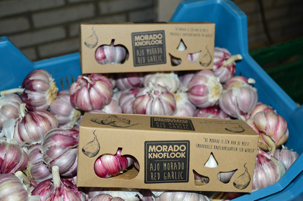 Depuis 2016, den Boer se concentre sur la vente de l'ail violet semi-épluché. Pour ce faire, il a mis au point une solution partiellement mécanisée pour peler les peaux blanches extérieures de l'ail afin que les consommateurs puissent voir clairement qu'il s'agit de l'authentique ail Morado. « Avec cet ail violet, nous pouvons nous distinguer de l'ail chinois vendu en gros. Il s'agit vraiment d'un produit différent, mais il est également vendu à un prix différent. Bien que la superficie consacrée à l'ail espagnol diminue, notre fournisseur affirme qu'il dispose d'une bonne récolte. »