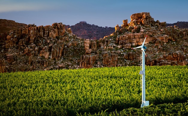 Autour d'Augrabies, dans le Cap Nord, une entreprise de viticulture et d'agrumiculture fait fonctionner ses ventilateurs antigel à partir de son parc solaire de 1125 kW, avec une capacité de batterie de 1062 kW. Il observe qu'à l'échelle mondiale, 50 à 200 heures d'utilisation des ventilateurs sont la norme, mais qu'au Cap Nord, le long des rives du fleuve Orange, où des vergers entiers d'agrumes gèlent parfois au milieu de l'hiver, leurs clients font tourner les pales jusqu'à 600 heures par an.