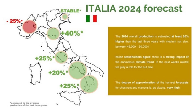 Les prévisions de production pour l'Italie en 2024 présentées à l'Eurocastanea, préparées par les techniciens des différentes régions et coordonnées par l'UNITO