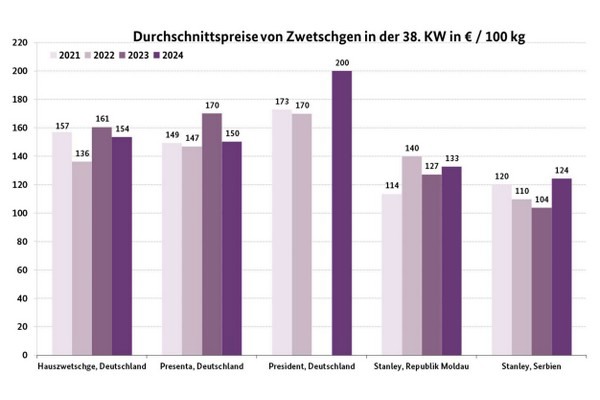 Les prunes locales étaient certes dominantes, mais leur présence a nettement diminué au fil de la saison. Les variétés Presenta et les prunes domestiques constituaient l'essentiel de l'offre, complétée par diverses variétés premium et des acheteurs variés. Des prunes Stanley, en provenance de Moldavie et de Serbie, présentaient parfois des faiblesses organoleptiques, ce qui leur a valu des réductions de prix. Des arrivages de France et de Pologne ont enrichi l'offre avec des quantités limitées. Malgré une disponibilité réduite, la demande a été satisfaite sans difficulté, selon le BLE. L'intérêt général était en baisse, à l'exception de Berlin, qui a signalé une amélioration des opportunités d'hébergement. Les prix ont légèrement augmenté en raison des volumes restreints. La commercialisation s'est déroulée dans un climat relativement calme : les fruits italiens, espagnols et français n'ont pas suscité un grand enthousiasme chez les clients, bien qu'une légère hausse des prix ait été observée par moments.