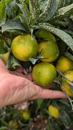 Gijbels est également satisfait de la qualité. « Nous avons eu beaucoup de précipitations récemment, ce qui a permis aux fruits de bien pousser, et je pense donc que nous pouvons commencer à récolter de belles clémentines. Il ne reste plus qu'à voir comment sera la coloration. » En effet, il a indiqué l'année dernière qu'il fait tellement chaud ces jours-ci que les clémentines les plus précoces restent parfois un peu plus vertes. « On s'attend toujours à une clémentine orange, mais en raison des températures relativement stables, les agrumes ne peuvent pas toujours bien se colorer. Mais nous entrons maintenant dans une période où la différence de température entre le jour et la nuit doit être bonne pour donner de la couleur aux agrumes. On peut voir que la coloration commence lentement à venir, mais les prochaines semaines seront importantes pour cela. »