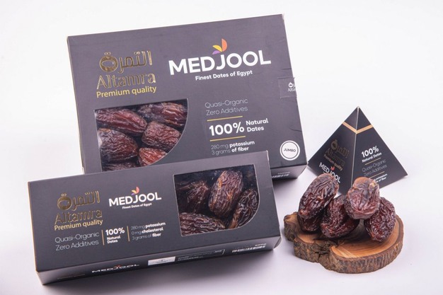 "Nous exportons nos dattes sous la marque Altamra, qui est une marque de haute qualité de dattes Medjool semi-séchées, conforme à la qualité internationale d'exportation, produite par Haggan Farm et commercialisée par Haggan Group L.L.C. Les dattes Altamra sont emballées avec un excellent design qui répond aux normes de goût de la classe A, et sont disponibles en trois tailles : boîte d'un kg, boîte de 500g, et emballage pyramidal de 65-100g. Ce dernier est principalement destiné aux régimes riches en nutriments, aux stimulants énergétiques, aux calendriers religieux, aux cadeaux d'entreprise et aux promotions", ajoute M. El-Haggan.
